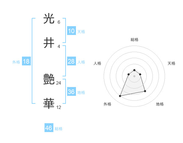 光井 艶華さんの総格は46画の1点!