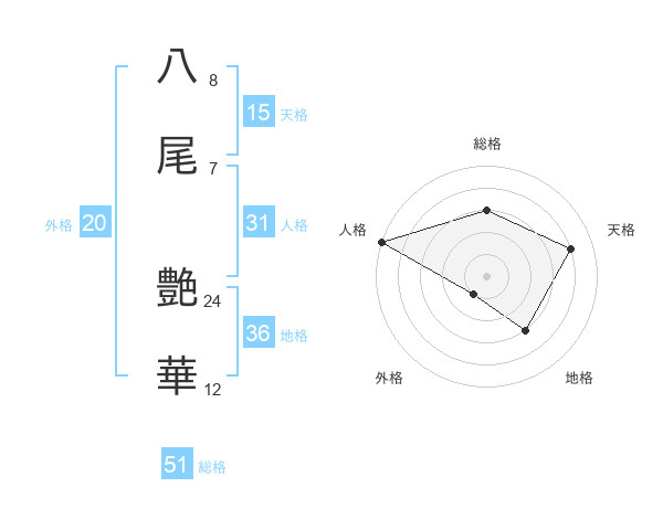 八尾 艶華さんを姓名の画数から五運を鑑定