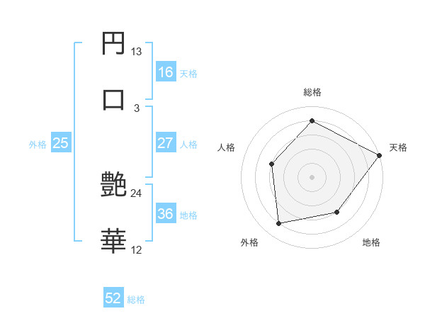 円口 艶華さんの総格は52画の4点!