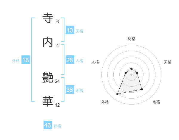 寺内 艶華さんの総格は46画の1点!