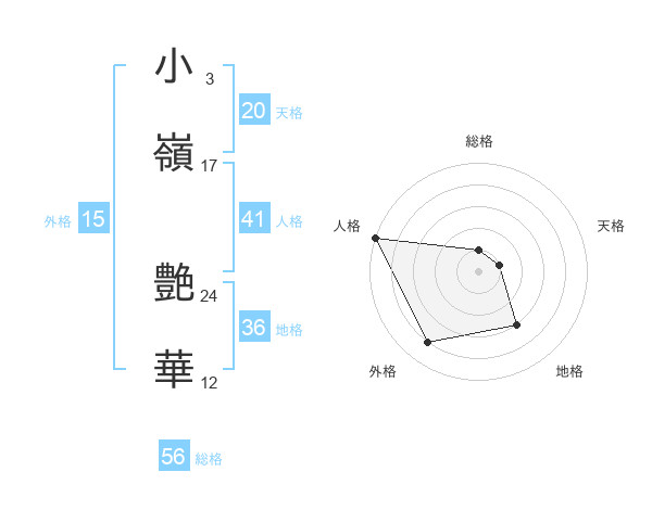 小嶺 艶華さんの天格は20画の1点!