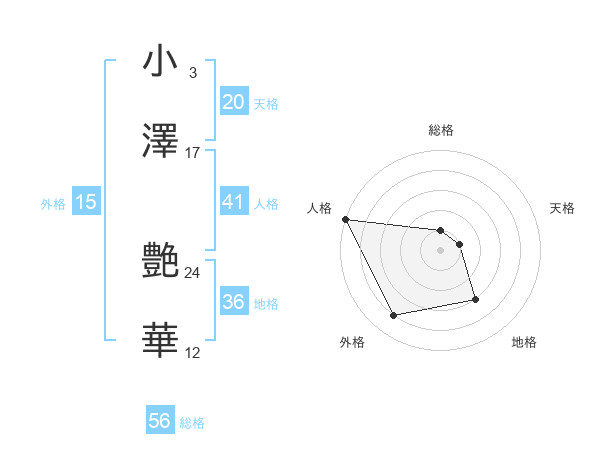 小澤 艶華さんを姓名の画数から五運を鑑定