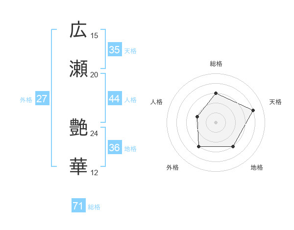 広瀬 艶華さんの総格は71画の3点!
