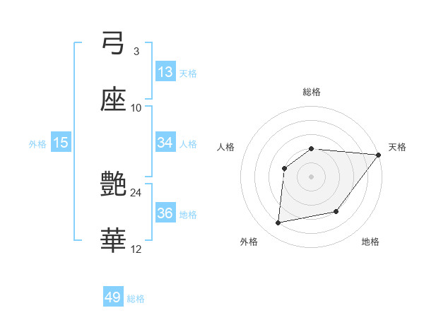 弓座 艶華さんを姓名の画数から五運を鑑定