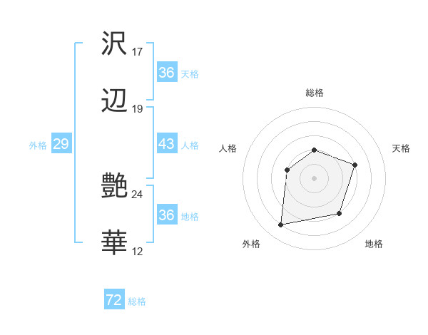 沢辺 艶華さんの総格は72画の2点!