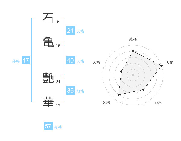 石亀 艶華さんの総格は57画の4点!