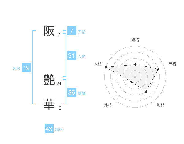 阪 艶華さんの総格は43画の2点!