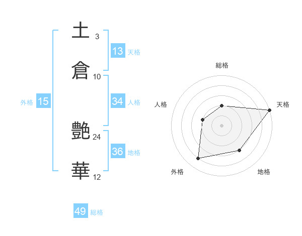 土倉 艶華さんを姓名の画数から五運を鑑定