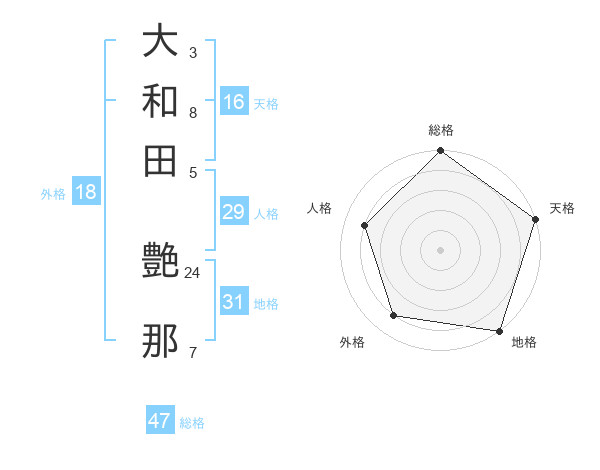 大和田 艶那さんを姓名の画数から五運を鑑定