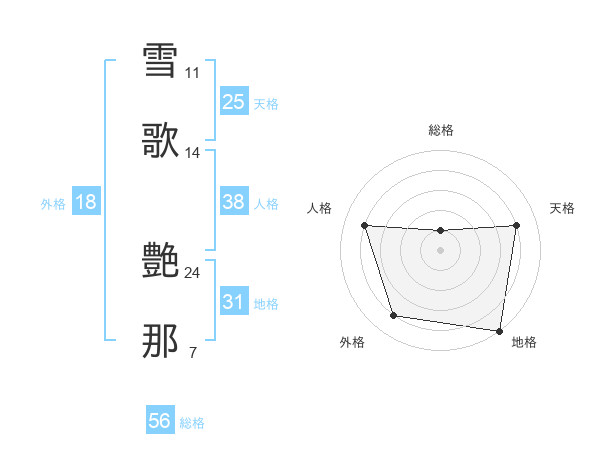 雪歌 艶那さんの総格は56画の1点!