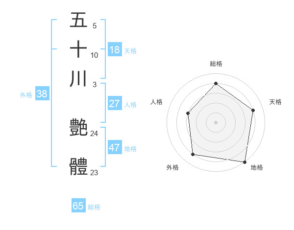 五十川 艶體さんを姓名の画数から五運を鑑定