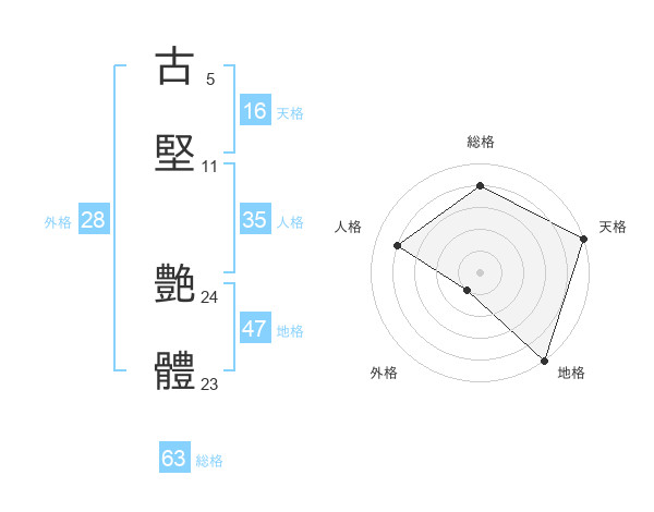 古堅 艶體さんを姓名の画数から五運を鑑定