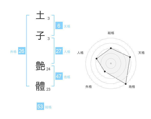 土子 艶體さんの総格は53画の3点!