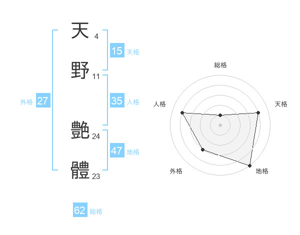 天野 艶體さんの地格は47画の5点!