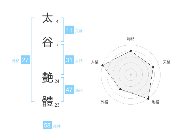 太谷 艶體さんの総格は58画の4点!