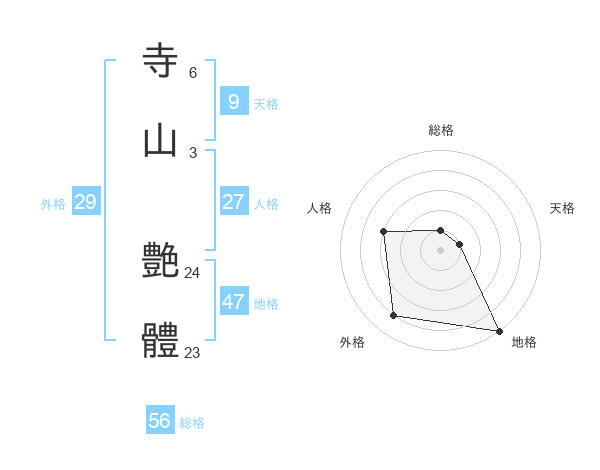 寺山 艶體さんを姓名の画数から五運を鑑定