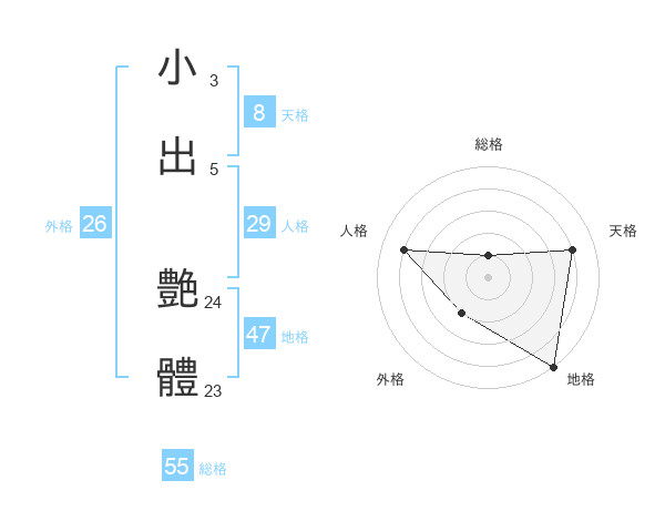 小出 艶體さんの総格は55画の1点!