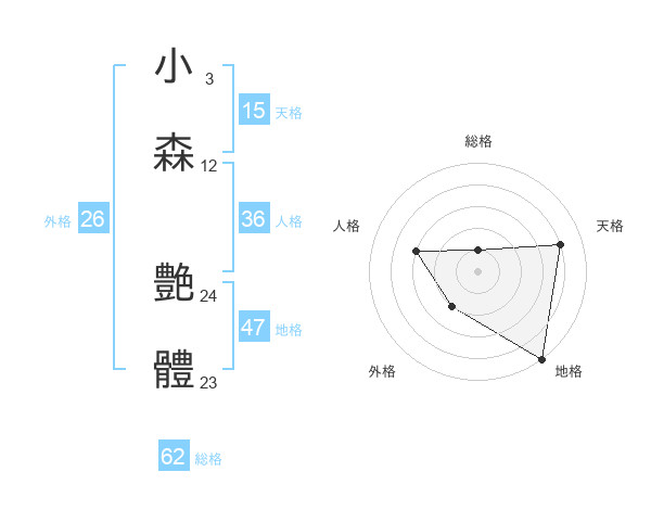 小森 艶體さんの天格は15画の4点!
