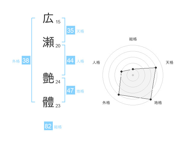 広瀬 艶體さんの総格は82画の1点!