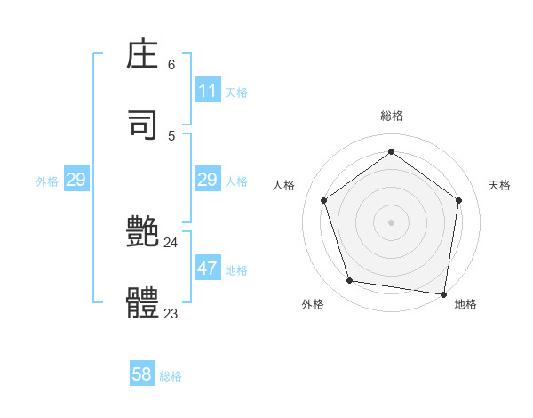 庄司 艶體さんを姓名の画数から五運を鑑定