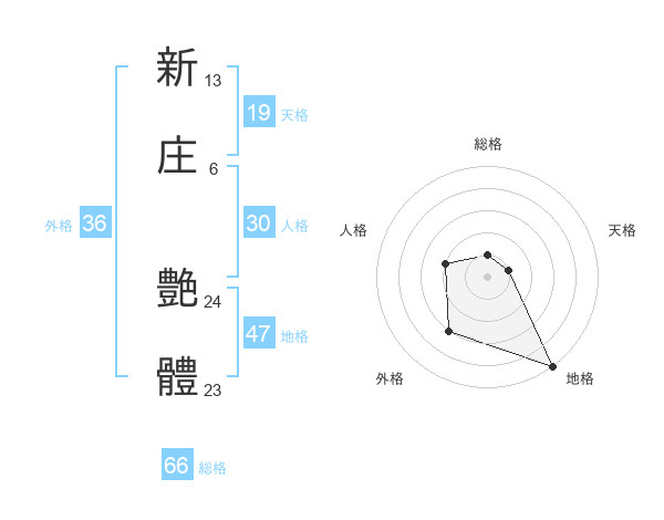 新庄 艶體さんを姓名の画数から五運を鑑定