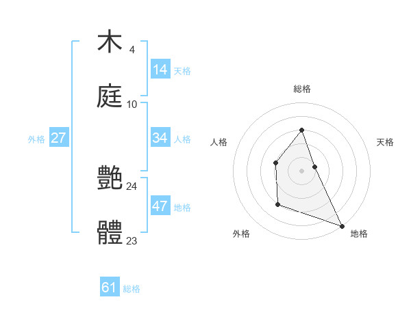 木庭 艶體さんの総格は61画の3点!