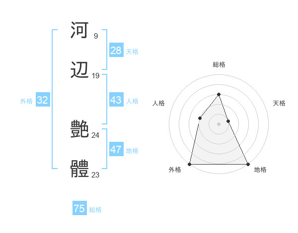 河辺 艶體さんの総格は75画の3点!