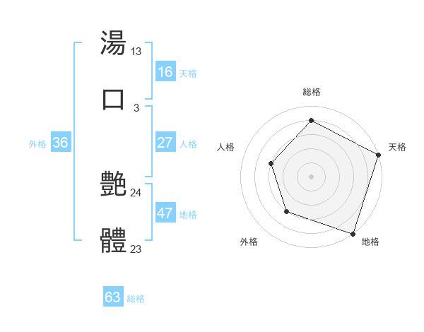 湯口 艶體さんの総格は63画の4点!