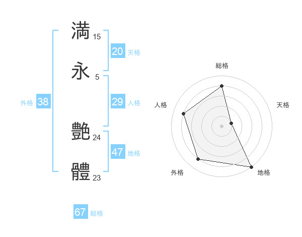 満永 艶體さんの総格は67画の4点!