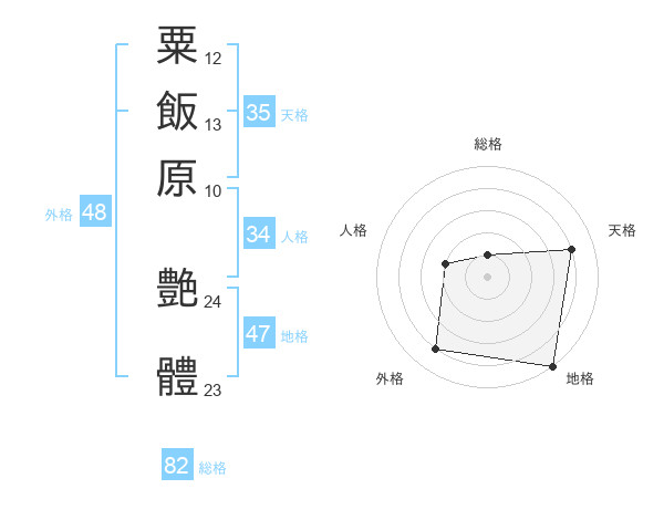 粟飯原 艶體さんの地格は47画の5点!