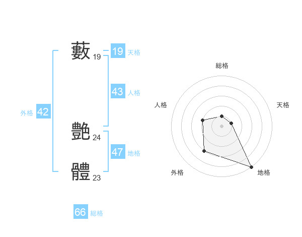藪 艶體さんの総格は66画の1点!