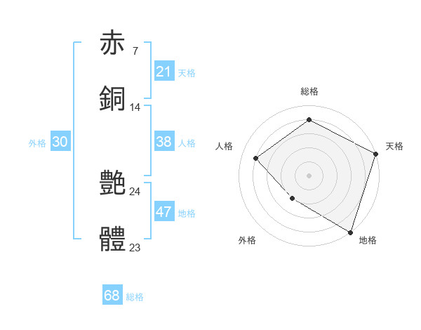 赤銅 艶體さんを姓名の画数から五運を鑑定
