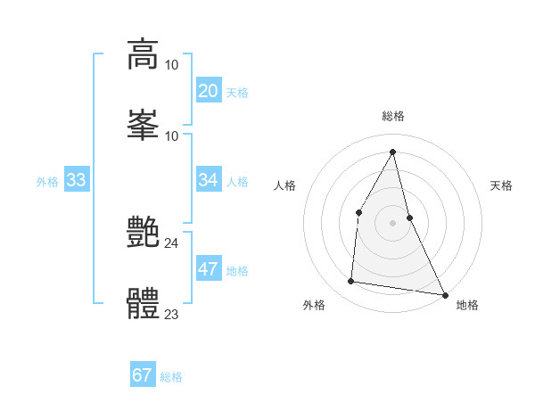 高峯 艶體さんを姓名の画数から五運を鑑定