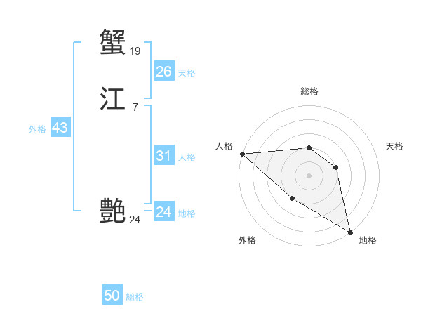 蟹江 艶さんを姓名の画数から五運を鑑定
