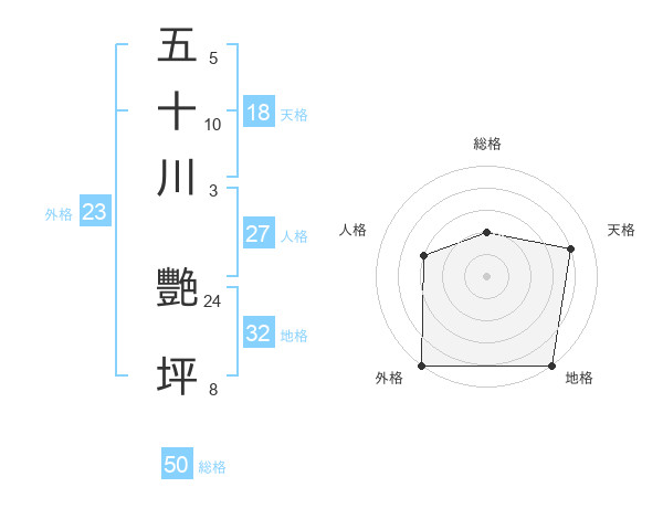 五十川 艷坪さんを姓名の画数から五運を鑑定