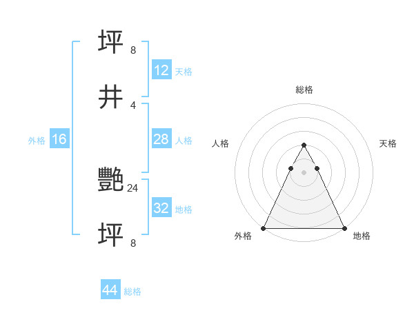 坪井 艷坪さんを姓名の画数から五運を鑑定