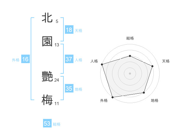 北園 艷梅さんを姓名の画数から五運を鑑定