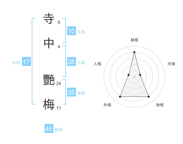 寺中 艷梅さんを姓名の画数から五運を鑑定