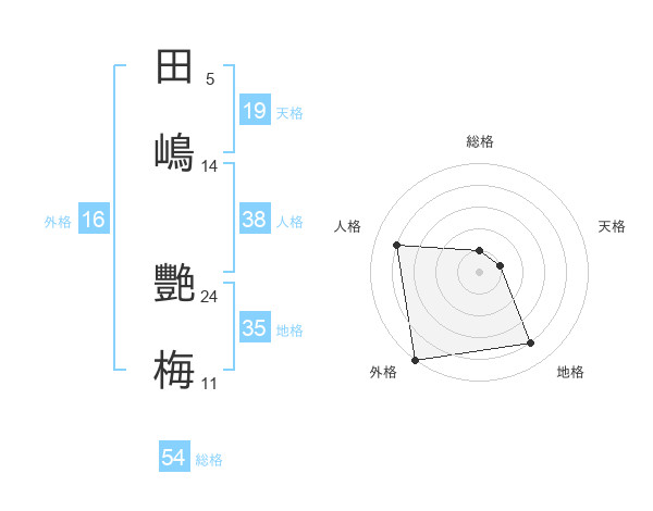田嶋 艷梅さんの総格は54画の1点!