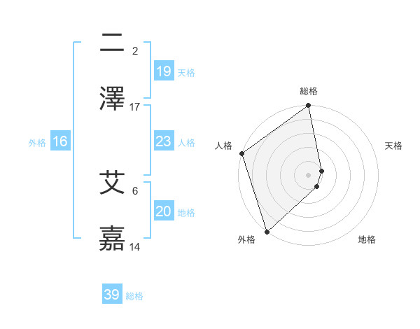 二澤 艾嘉さんを姓名の画数から五運を鑑定