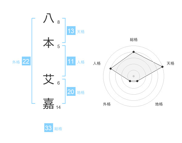 八本 艾嘉さんを姓名の画数から五運を鑑定