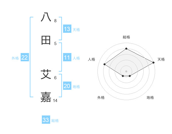 八田 艾嘉さんの天格は13画の5点!