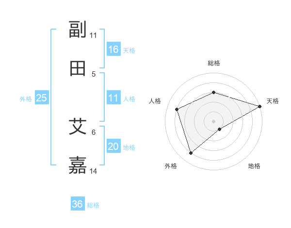 副田 艾嘉さんの天格は16画の5点!