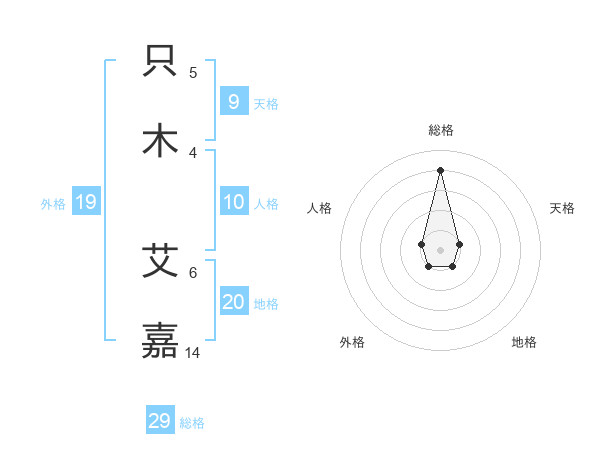 只木 艾嘉さんの総格は29画の4点!