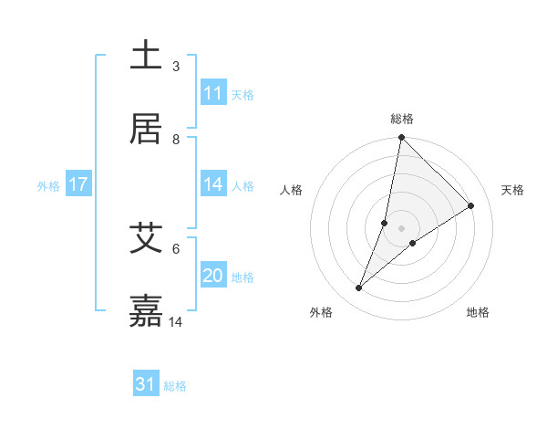 土居 艾嘉さんの総格は31画の5点!