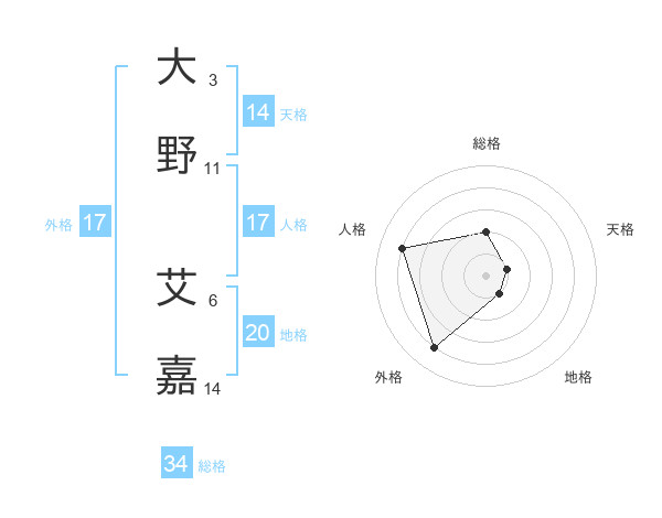 大野 艾嘉さんを姓名の画数から五運を鑑定
