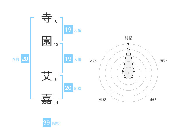 寺園 艾嘉さんの天格は19画の1点!