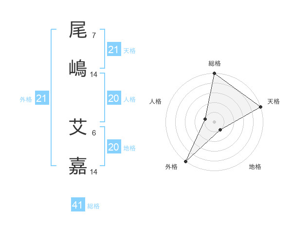 尾嶋 艾嘉さんの天格は21画の5点!