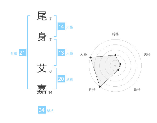 尾身 艾嘉さんの総格は34画の2点!