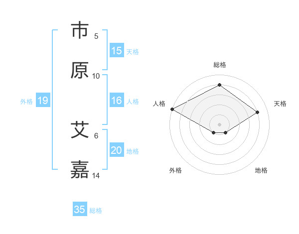 市原 艾嘉さんを姓名の画数から五運を鑑定
